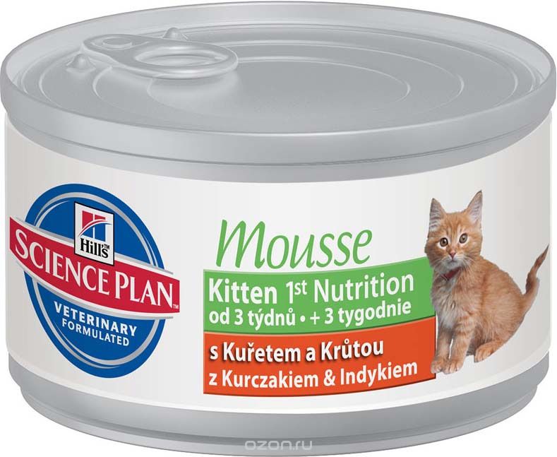 - Mousse - is a product of soft consistency, where all components are very crushed to a homogeneous mass. It is used mainly for the introduction of the first complementary foods to little kittens.