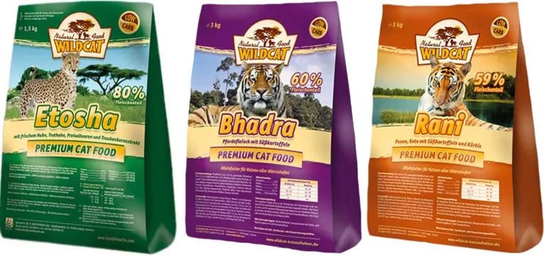 - Wildcat - German holistic feed class. The main component of the product are meat ingredients in the amount of 75-80% of the total. Carbohydrates in these feeds represent the Jerusalem artichoke vegetable. The food is enriched with spicy herbs, berries, probiotics. This line does not contain medical and specialized feeds.