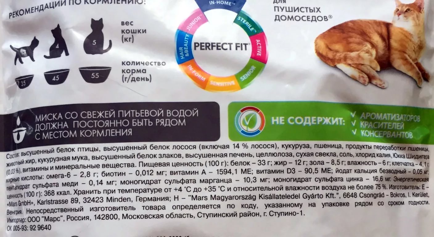 The main element in any cat food is its constituent ingredients. In good feeds of holistic and super-premium class, all components are of natural origin only, and there are no dyes, preservatives or flavors in them. The cheap price segment of feed, on the contrary, incorporates all these ingredients.