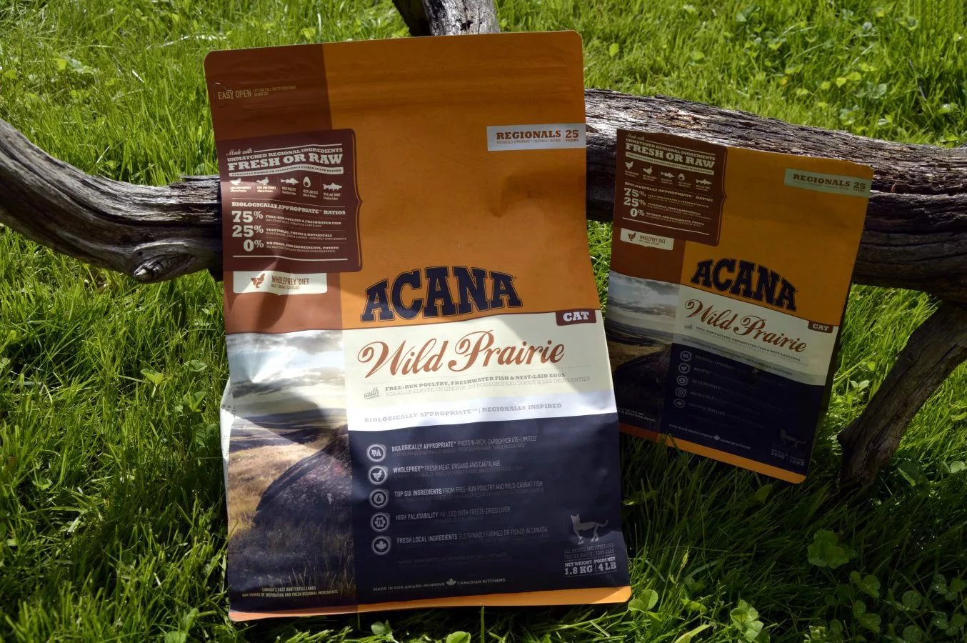 - Acana - Another type of cat food, produced by Canadian manufacturer Champion Petfoods. This is a holistic, not containing in its composition of cereals. This food is considered complete, it is suitable for daily feeding and contains up to 75% of meat or fish natural ingredients. In this line there is no specialized and medicinal feed.