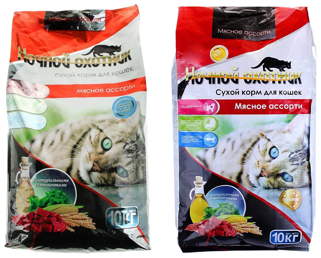 Premium | Brit Premium, Sterilised, Royal Canin Hair & Skin Care, "Night Hunter" | Online store, pet shop, supermarket. | The content of natural ingredients, including meat - up to 30-35%. Contains food coloring and flavorings. | 67-77% | 150-280 rubles |
