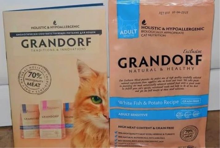 - Grandorf - Italian and Belgian manufacturers produce these hypoallergenic holistic feeds for Russian customers. The product has a certified European quality, in its composition dietary varieties of meat and fish occupy 70-75% of the formula. It is produced in the form of dry granules and canned food. Maintains a normal level of acidity of urine, does not contain preservatives and dyes.