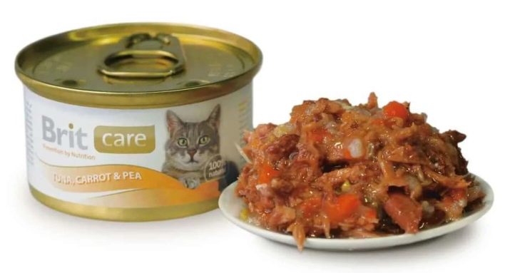 Cat food in the form of canned food, like dry food, is subdivided into the same quality classes, they are even produced by manufacturers under similar brands and often constitute a common product line.
