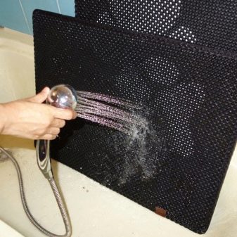 - The double-layer mat is quite simple to maintain and store, which is another undoubted advantage. The litter is equipped with a special side opening (pocket) through which all the dirt is shaken out. You can wash the mat under the faucet and shower, and periodically clean with a vacuum cleaner. It is also easy to store, it is enough just to fold the product in half.