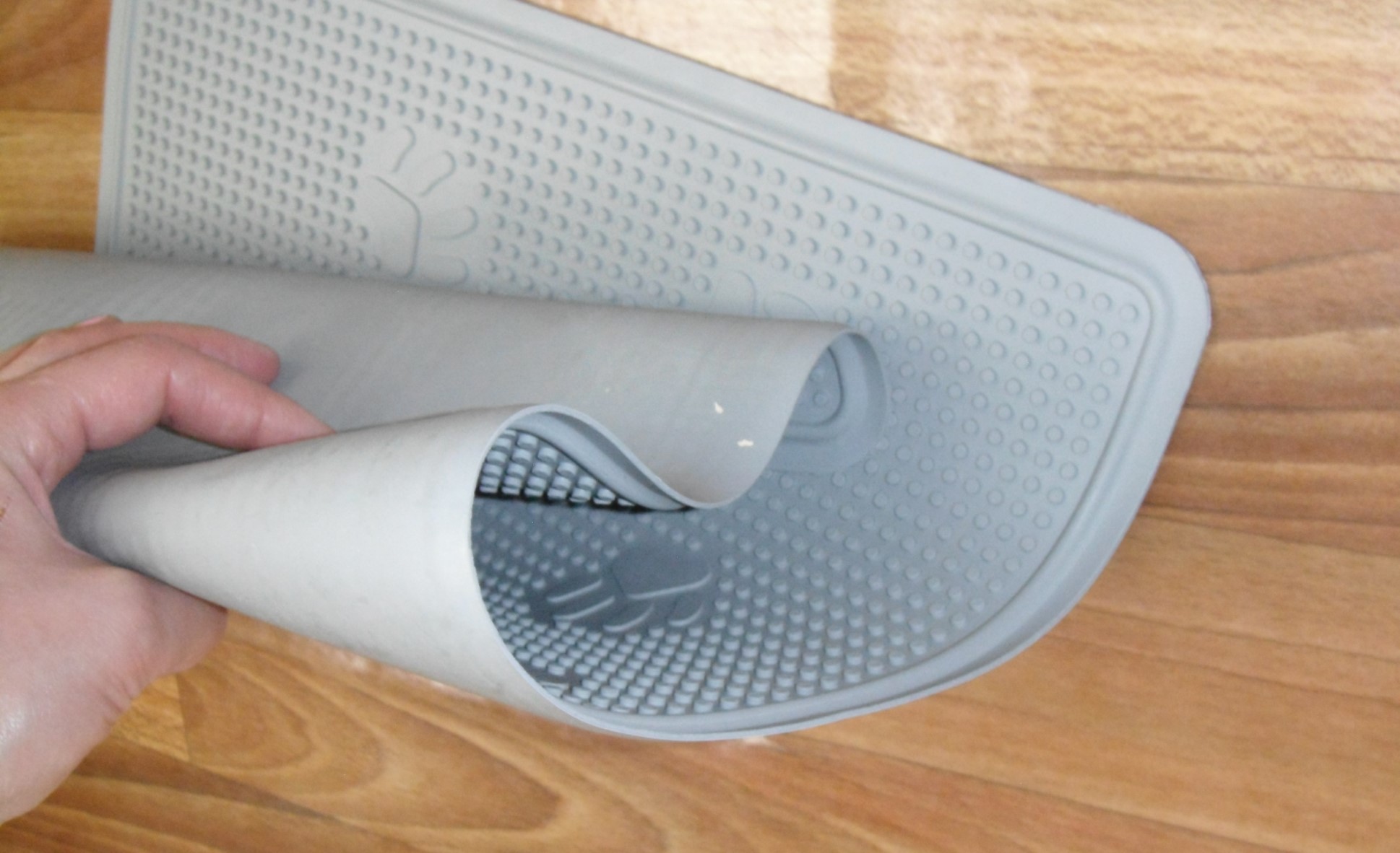- Anti-slip material underlies the water-repellent layer, which is the base. The owner should not worry that cat urine will be on the floor. Besides such material allows a rug to be fixed strongly on a floor.