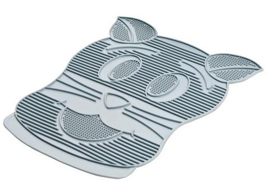 - German company Trixie immediately conquers the appearance. She offers to host a microfiber product in the shape of a cat.Thanks to the special surface, you can not worry that the rug will slide, and thanks to the ribbed structure you can be sure of cleansing the pet's paws from moisture and filler residue. The product of this German company is suitable for any tray, it is easy to maintain and comfortable in size. The only disadvantage is that cat urine remains on the mat.