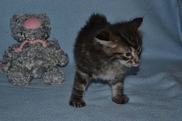 The fourth week is the beginning of feeding. At this time it is necessary to provide small cats with clean water. Now you can start to teach kids and to the toilet. It is important to consider that the filler must be mineral. Clumping and silica gel options are not suitable, because insensible kittens try everything new to the taste.