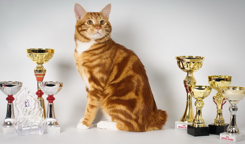 When the bobtail is one year old, another antihelminthic prophylactic treatment is performed. After that, the pet is transferred to adult food. Also at this time make a mandatory comprehensive vaccination. At the exhibition of the short-tailed handsome can be displayed after they reach 10 months.