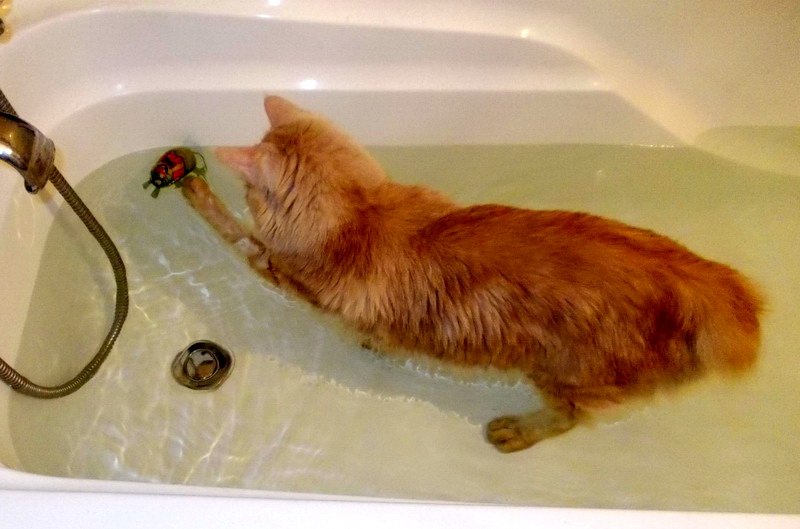 - Bathing. Surprisingly, short-tailed cats are very fond of water treatments. They gladly splash in both natural waters and in the bathroom. Often wash four-legged pet optional. Usually this is done as needed: if the fur coat is dirty or before the upcoming exhibition.