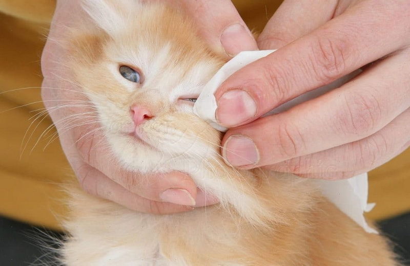 - Cleansing eyes. To do this, use a soft cloth. Previously, it should be moistened with eye drops for animals.