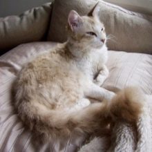 Some mature males can change their appearance: they lose their hair, and then again overgrown with curly hair. The color, length of hairs and their degree of curl can vary in different individuals of a given breed. There are pets that have both long and short hair. All cats can have a light springy coat, which is wavy or curly. Too much curly hair grows on the pet's belly, near the ears and on the neck.