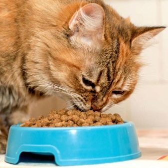 Cats and cats can be fed with dry food. Food must be of high quality, have all the necessary trace elements, nutrients and vitamins. You can also feed your pet with natural food, but not waste. If the owner will give cats natural food, then he needs to remember that vitamins must be added to food, as natural food does not have enough vitamins.