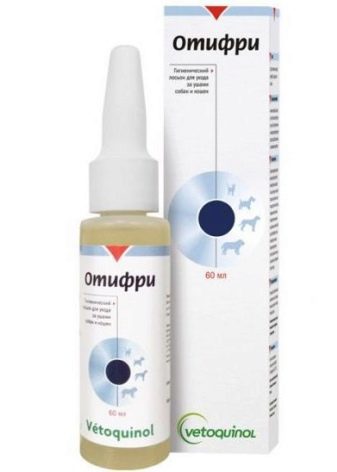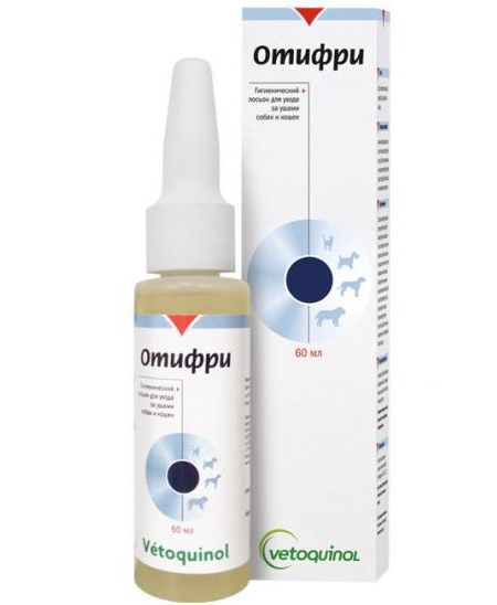 It is necessary to clean the ears, using cotton swabs and aids, for example, Otifri Drops. Before cleaning, it is necessary to drip two drops of the substance into the ears, so that the polluted area can split a little. After that, you need to take a cotton swab and gently in a circular motion to clean the outer ear canal. Cotton buds must be purchased with a limiter, in order not to accidentally damage the pet's eardrum.