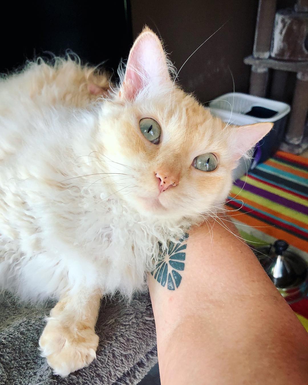 Laperms are unpretentious, and they do not have any needs to the place of residence. Since animals love their owners, you need to place the cat bed next to your sofa or chair. For the most part, cats prefer to lie near their owner or even in his place. For this breed life is quite suitable in the country.