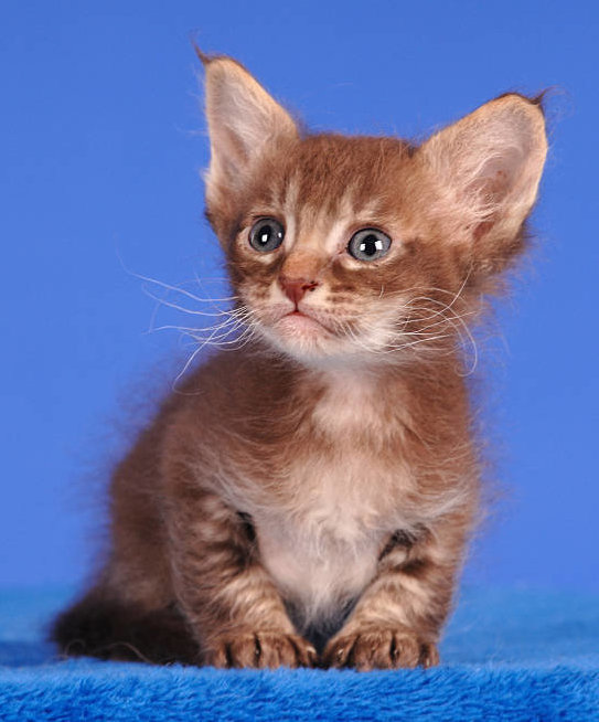 Cat owners Linda and Richard Coel thought that the last kitten is weak, and did not draw any conclusions about the appearance of the cub. The kitten grew, and as soon as the second month ended, the cub began to appear soft and wavy coat. For the third month, the kitten's entire body was completely covered with curly hair. The kitten became charming, he was given the name - Curly, this name meant "curly hair".