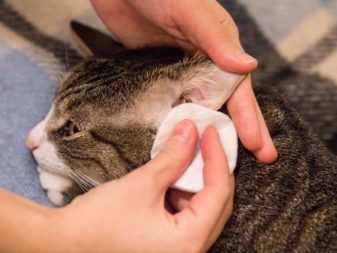 - Eye and ear treatment. Short-footed cats rarely suffer from problems associated with these organs. If secretions appear in the corners of the eyes, they should be immediately processed. To do this, just use a wet swab on a gauze basis. Ears should be carefully monitored and cleaned once a week. They are cleaned of various impurities with a cotton pad pretreated with a cosmetic.