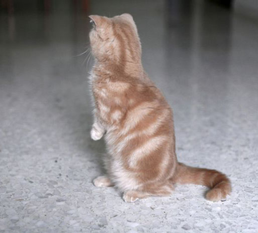 However, this feature does not prevent the animal from being energetic. Pets are very good run, but they do not know how to jump high. Often, kittens are called kenguryats because of their inherent posture. Animals can sit on their hind legs, while the tail serves as a support. The forelimbs are not involved in this process and just hang down.