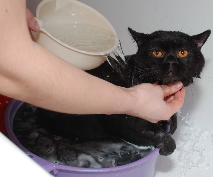 - Bathing. Like many breeds of cats, dwarf pets have a negative attitude to water procedures. Therefore, it is not necessary to bathe them often and without good reason. In the year bath day is arranged no more than 6 times. To avoid water getting into your ears, you should insert cotton swabs into them. For wool, you must purchase a special shampoo. Apply it in the direction of the growth of wool. Wash head shampoo is undesirable. It is best to just moisten it with water. Pet rubbing with a towel is not recommended. You need to get him wet.