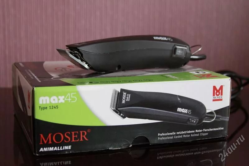 - Moser 1245 45W. Pretty powerful professional machine. The 45 W motor allows you to tidy cats with thick hair, for example, Persians or British. After each session, the blades must be lubricated with a special agent. The special brush for clarification of the cutting objects enters a set. Separately offered and interchangeable nozzles that allow you to cut cats with wool of different lengths.