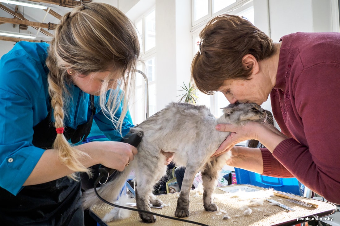 - It is best to perform the grooming procedure together with an assistant. Well, if the partner is familiar to the pet, then he will not worry. One of the novice groomers should hold the cat, calm him down, cover his ears, and the second one should shave off the wool directly.