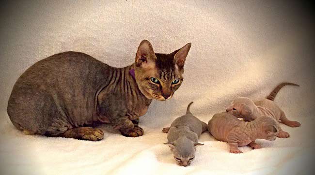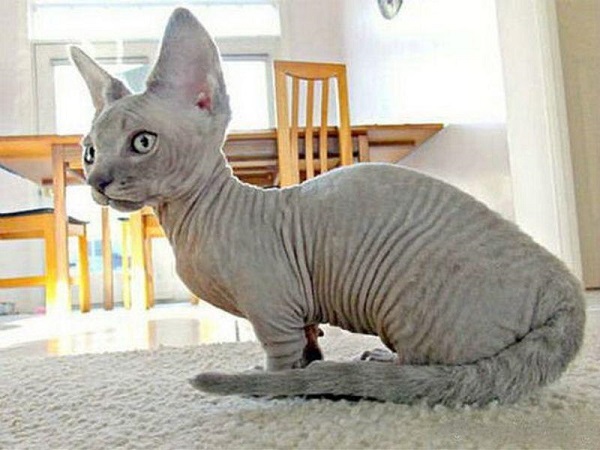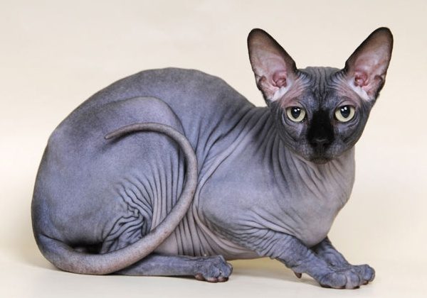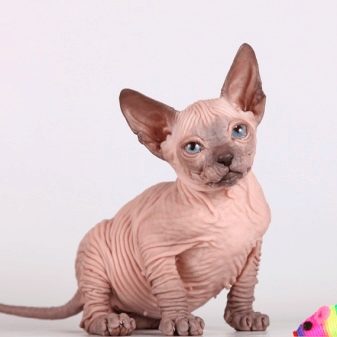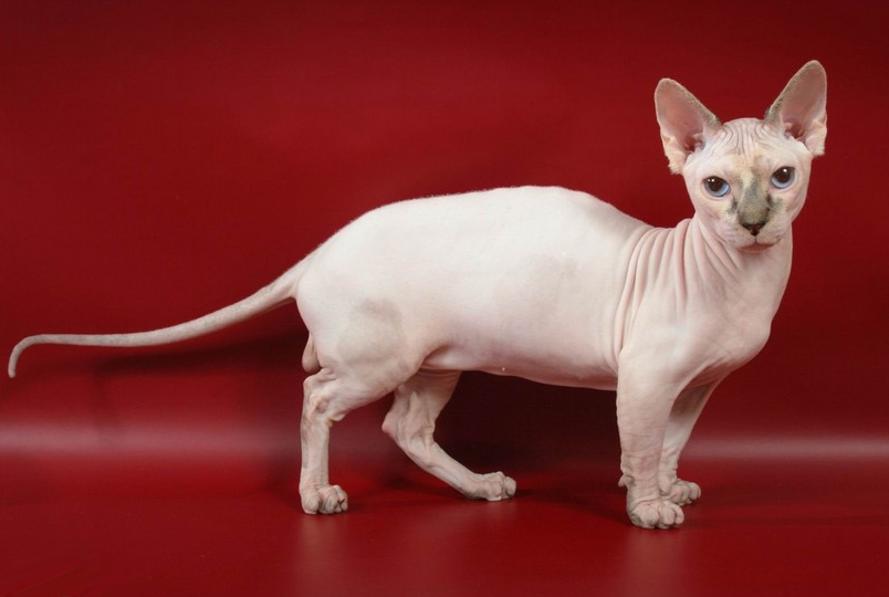 - coat short; fur points are observed on the muzzle, ears, paws, on the tail and under the tail; there are specimens with fur paws, thighs, shoulders, but a hairless belly;