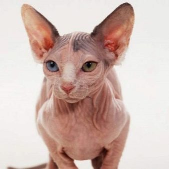 - the ears are large, tense, wide, the tips are slightly rounded, at the base are wide, there are cats with hairless ears;