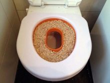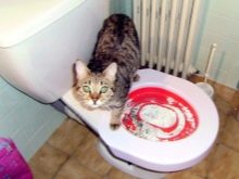 Among the advantages of overlays on the toilet is to provide ease of use. In addition, the use of nozzles is the most effective method of teaching cats to the toilet. As for the shortcomings, they also include the risk of injury.
