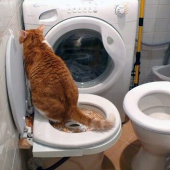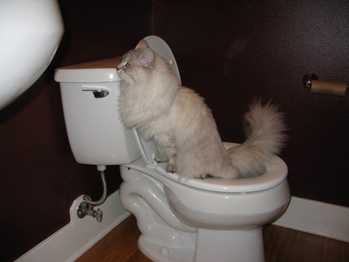 With regard to the disadvantages of teaching pets to the toilet, it is of primary importance to highlight the potential danger. Even the most agile cat can slip by jumping on the toilet seat or by pressing the drain button. In addition, a similar way to relieve the need is not suitable for all cats because of age restrictions or health.