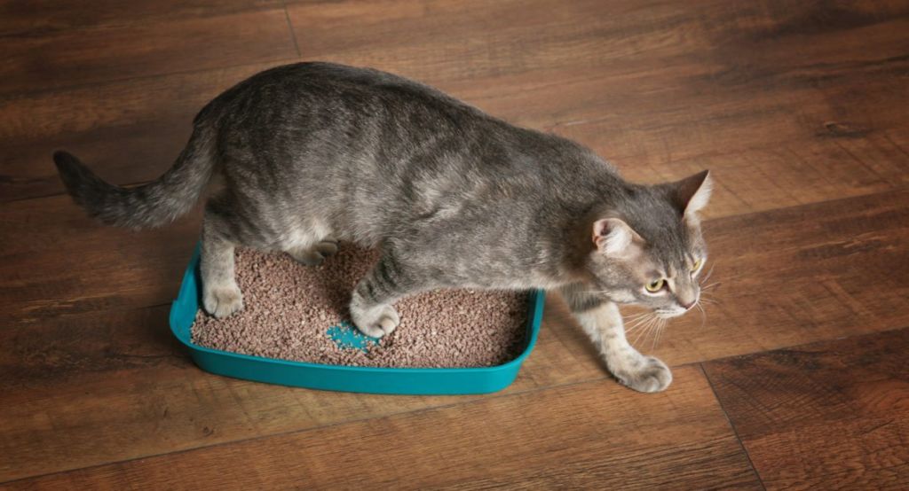 - Next to the cat's toilet should always be a trash can. The bucket will prevent floor contamination.