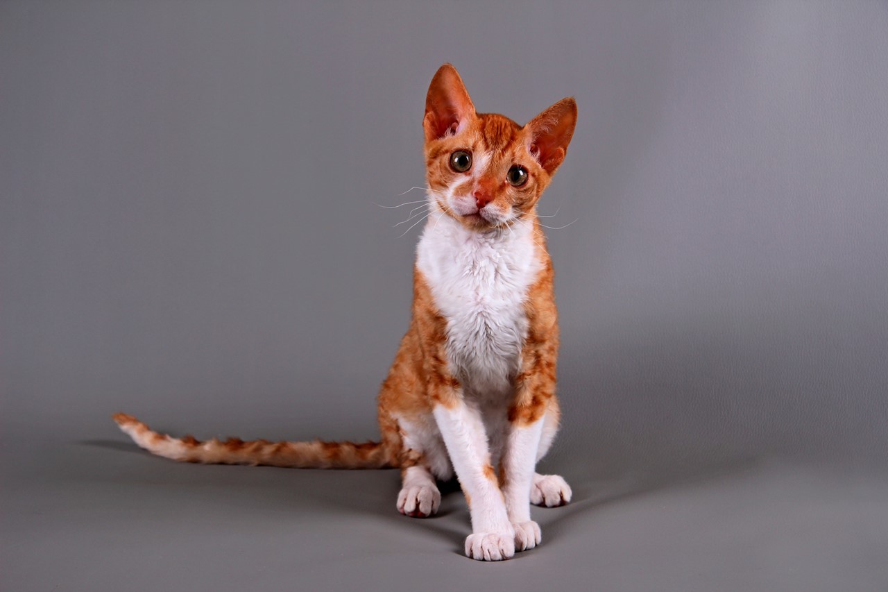 The first sign, unusual for domestic cats, is curly wool. Often breeds with a similar “coat” are regarded by breeders as the most unusual. They also have expressive almond-shaped eyes and rather large ears. According to these characteristics, animals are classified as Rex and can be represented by a list of the following breeds: