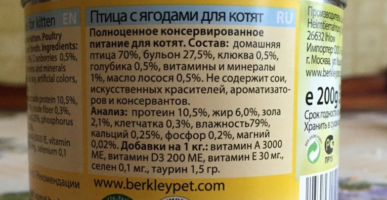 Wet food can be found in pet stores in the form of canned food or bags. Looks at a variety like slices of meat drenched in sauce. The composition contains various types of meat, poultry and fish, vegetable products and cereals. In this case, the feed contains 10% more moisture than dry options. In addition to the above ingredients, premium and super-premium feed include vitamins and other beneficial supplements. Sometimes offered in the form of pates. Kittens usually prefer wet food.