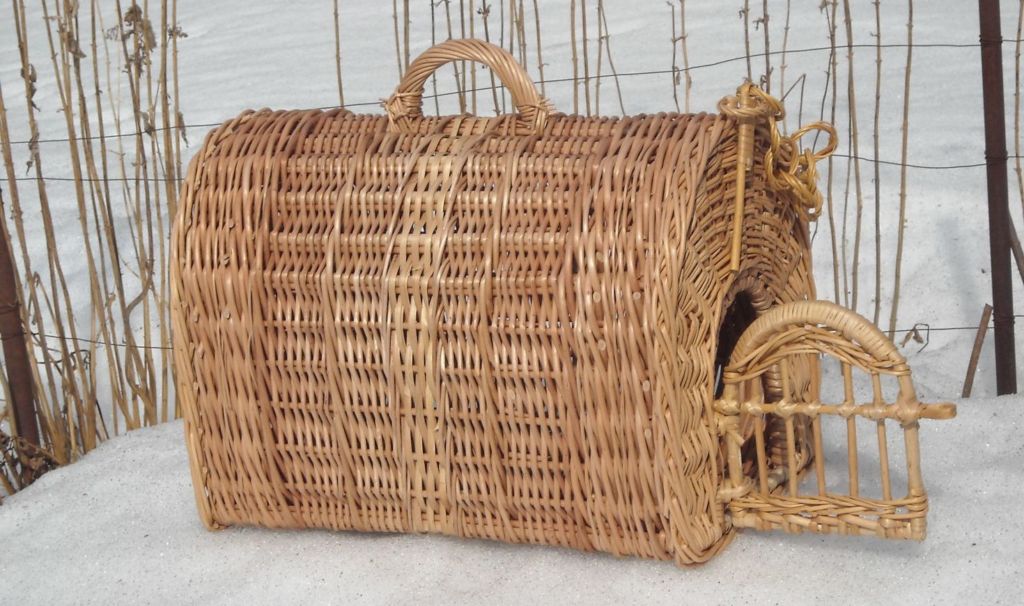 This classic is a basket for carrying cats, made from natural wicker or its plastic substitute. This accessory is distinguished by its low weight, durability of construction, it has a hard bottom and a sufficiently spacious place to rest. For the peace of mind of the owners, reliable latches and special locks are installed on products of this type. But the basket is not protected from precipitation, and in winter the pet will be just cold in it.