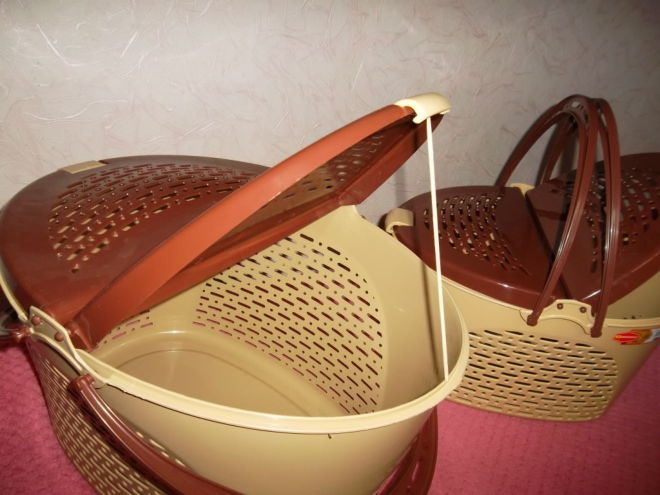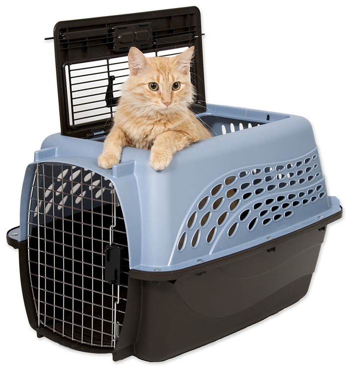 A compromise solution is a plastic box, which is suitable for short trips, and for long journeys or even flights. Durable frame in this design is made of hypoallergenic plastic, ventilation holes are complemented by a lattice door, and inside there is enough space for the rest of one pet or even a cat with kittens.