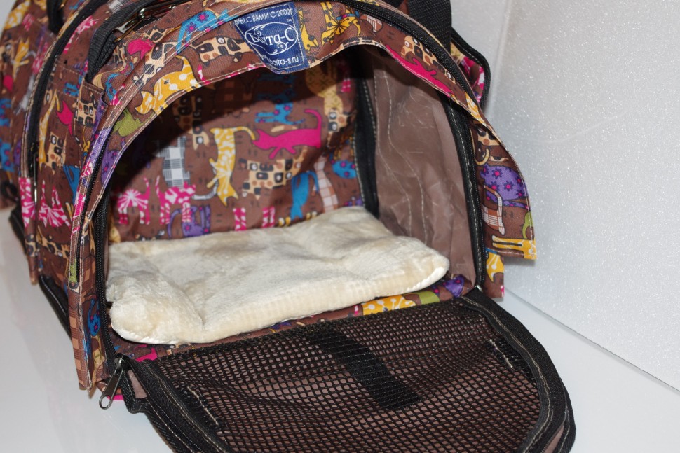 If you have to use the carrier in year-round mode, you should take care that the pet was comfortable in it in any weather. For example, in soft bags, for which winter operation is foreseen, removable liners in the walls are often made, allowing to warm the accessory during the winter period. Another option - an outer fur case for a hard carrying.