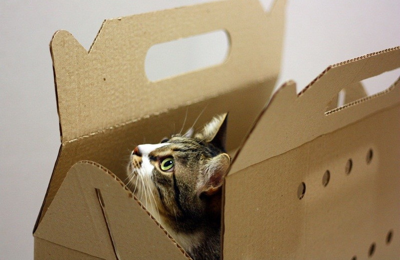 The easiest way to carry it is possible to do it yourself. If you have to take the sick pet to the vet or transport the kitten, you can create a temporary shelter literally from scrap materials - out of the box (cardboard, with high sides), taping its seams with duct tape. A bed of blanket or a soft mattress is placed on the improvised “floor”.