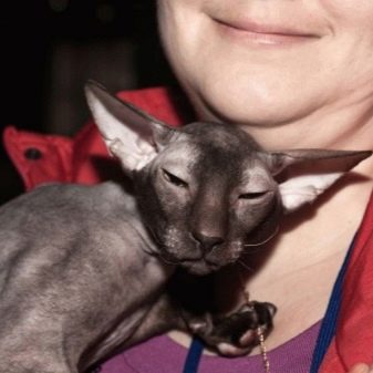 The fact is that on the skin of these pets a special lubricant is formed, which performs a protective function, and regularly washing it off, you can provoke stress in your pet. Nevertheless, it still needs to be carefully removed. It is better to do this with a clean cloth dipped in caring oil. Or you can do with an ordinary wet cloth. You should not get involved in frequent bathing with the use of shampoos, otherwise the skin of the Peterbald will begin to peel off.