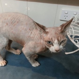 - The absence of wool in St. Petersburg sphinxes makes them especially vulnerable to external hazards. For example, if the owner has a private house, and the cat walks on the street, then due to the curiosity of the animal, there is a high probability of getting some kind of injury (including an insect bite, a reptile or a dog). It is better to keep Peterbald at home in order to avoid various injuries that will provoke further skin diseases.