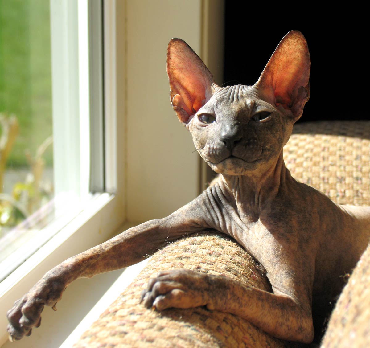 - Sunlight. Sunbathing this breed is contraindicated. Sphynx is a hairless breed, burns can easily form on their skin. Therefore, you should protect your pet from direct sunlight.
