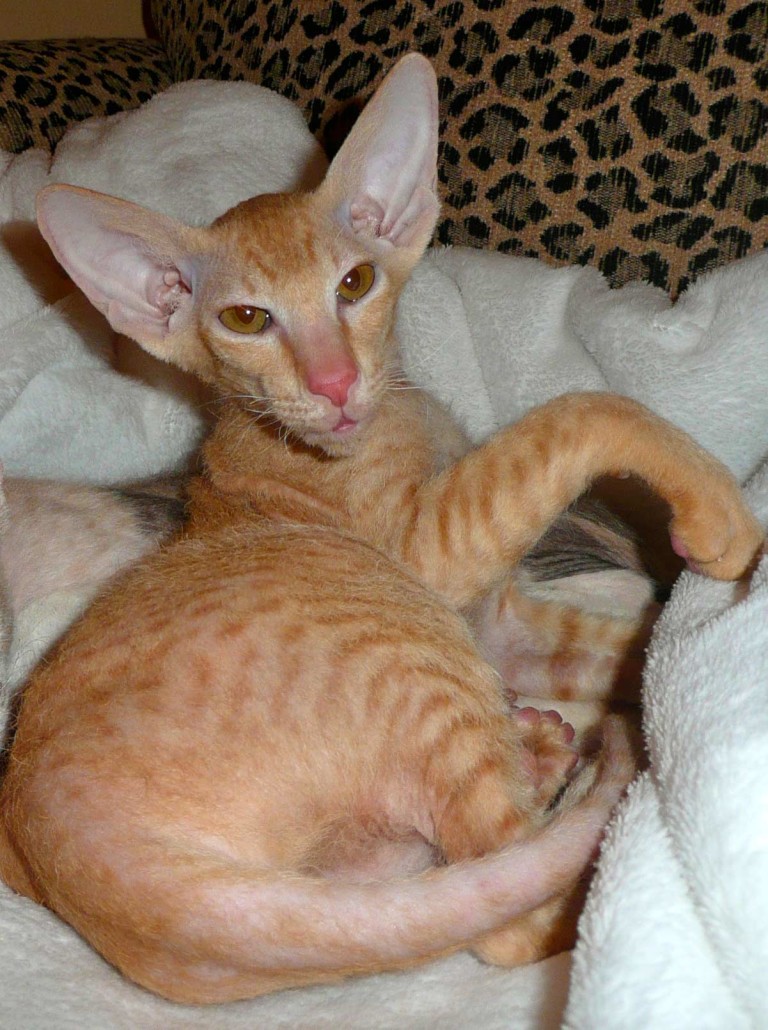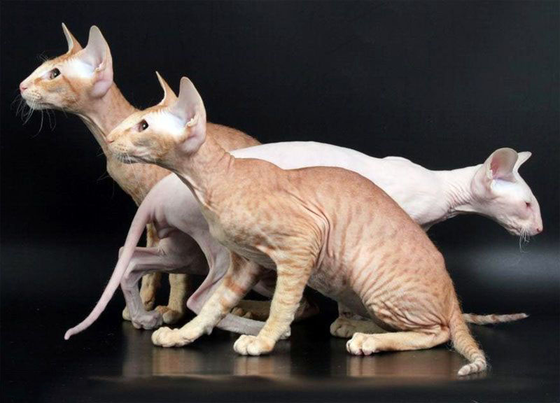 These unusual cats owe their birth to a person who crossed two breeds - the Don Sphynx with an Oriental. As for the first experiment on such a crossing, it was made in 1994. The St. Petersburg felinologist Olga Mironova carried it out, and in this way brought out four kittens-hybrids. They became the official ancestors of the Peterbalds.