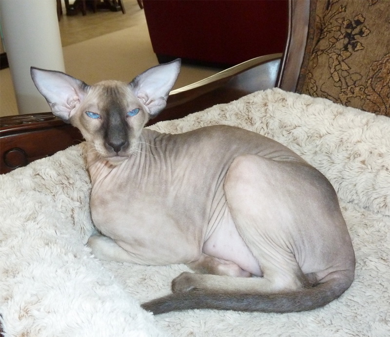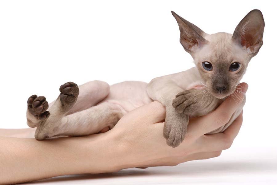 - Brash point - Kittens have fur on the body and tail. With age, the body becomes bald, and hair remains on the face and limbs.