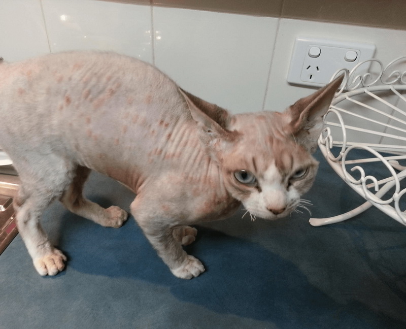 - Peterbalds suffer from allergies. And the rash is never once. It usually becomes a permanent ailment of the animal. But the owner should not panic, because a special lotion from a veterinary pharmacy will relieve the pet from allergic reactions. It is only important to monitor the condition of the pet's skin and exclude factors that provoke a rash.