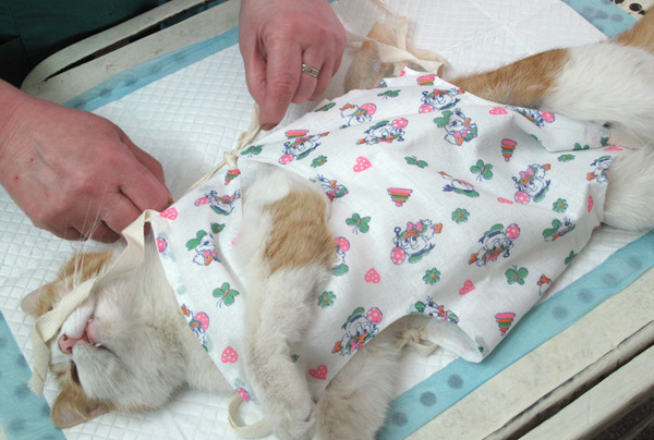 Do not forget to replace the blanket in time or send it to the wash, especially at first. In no case should an operated animal wear a dirty bandage.