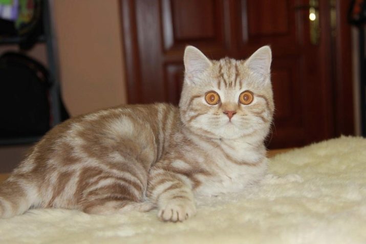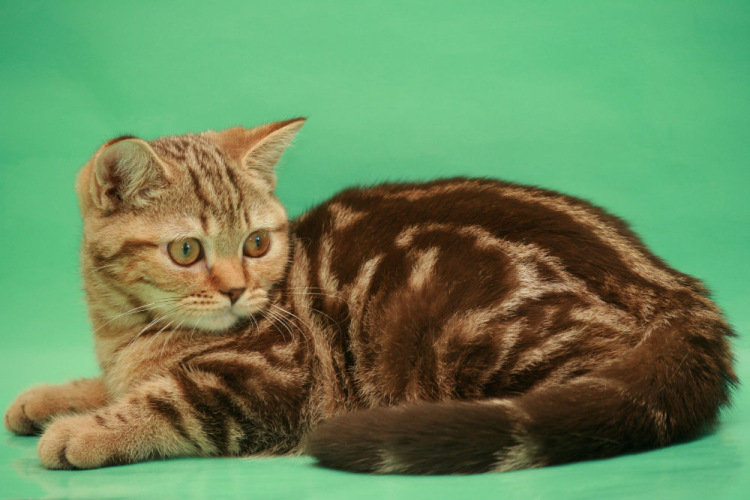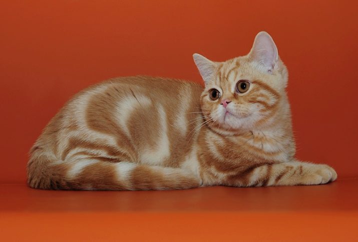 Gentle and elegant marble can often be found in the colors of a British or Scottish cat. These species differ from each other only in the structure of the ears. The Scots aristocrats are bent forward and pointing down.