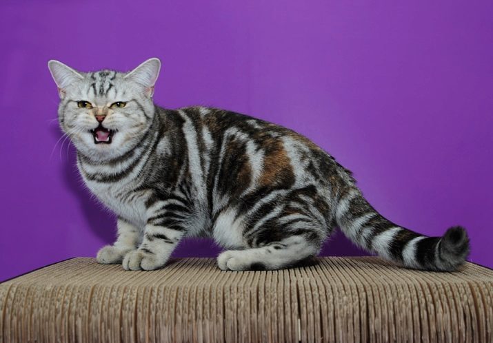 Marble coloring at these cats can be usual or tortoise. Representatives of these breeds often have difficulty transferring a similar color to their offspring.