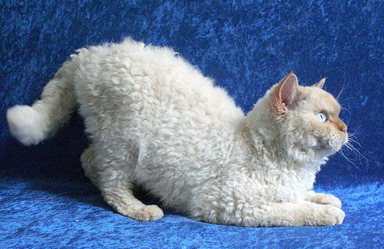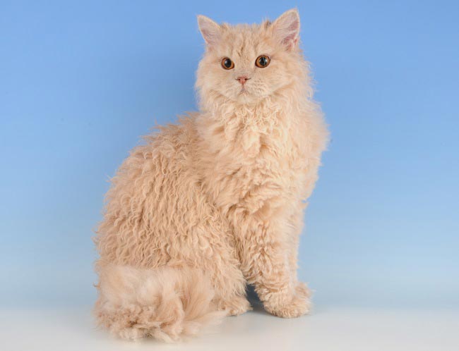 But if you need an even more exotic creature, you can look at the breed Selkirk Rex. This is a relatively new type, distinguished by curly hair. At the same time, unlike other curly cats, it is very large and has a ponderous bone system.