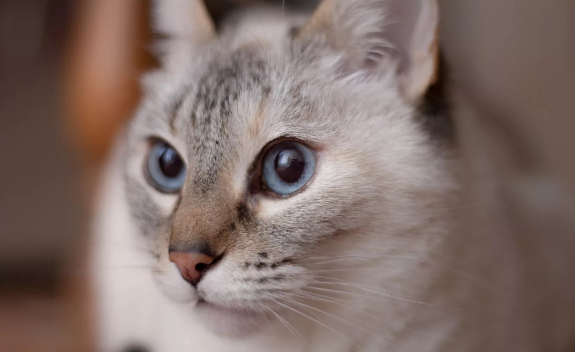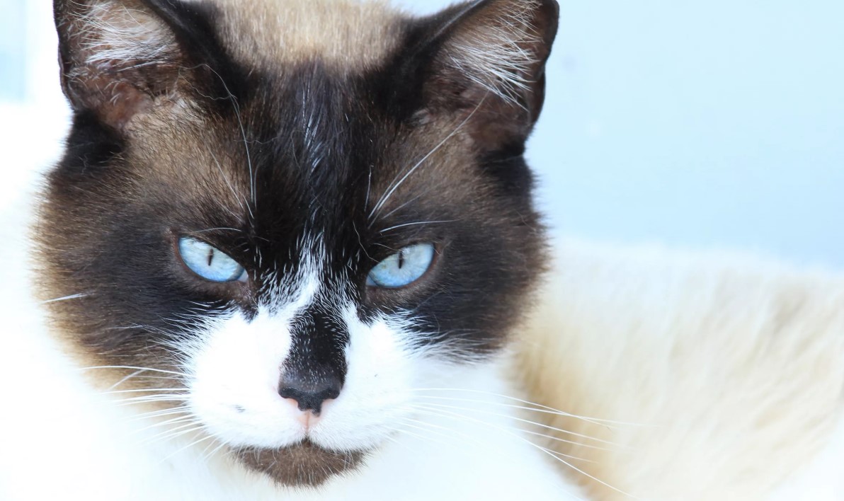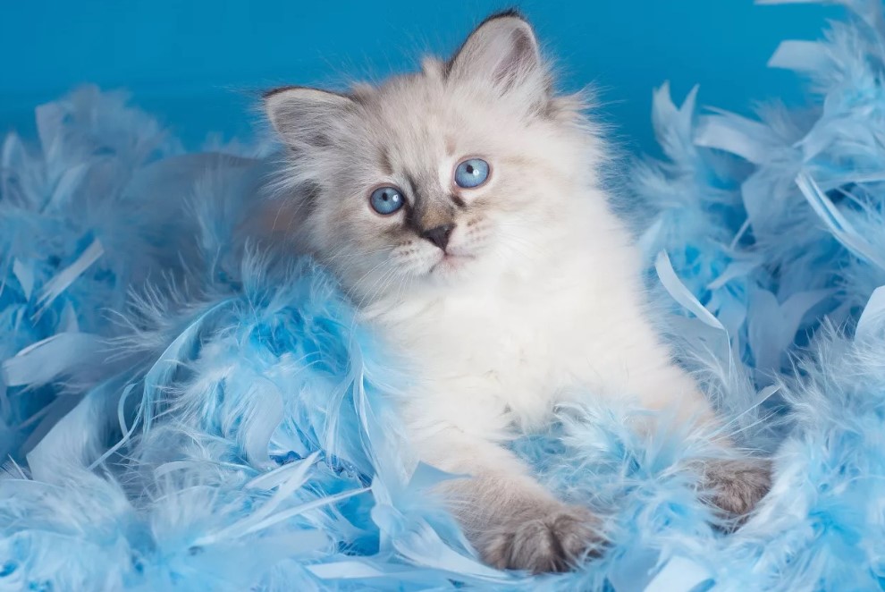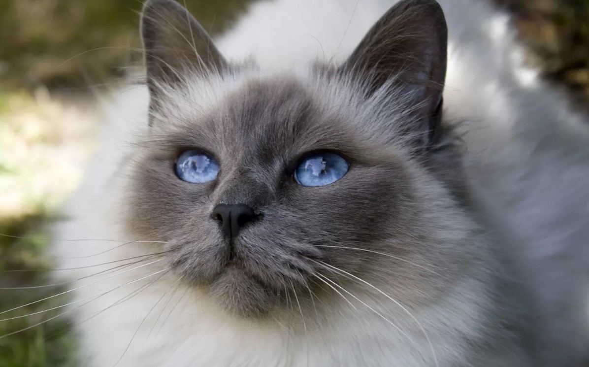 A cat with blue eyes does not have to be white. We give the breed color-color point, which can boast blue eyes of different shades.