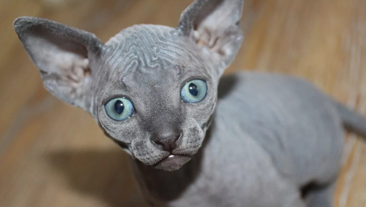 - Sphinx. Bald cats are predominantly white in color, so they can have blue eyes just like others. Sphinxes are very fond of people, so they are used even in procedures for zootherapy. Such an animal will be a wonderful blue-eyed member of the family.