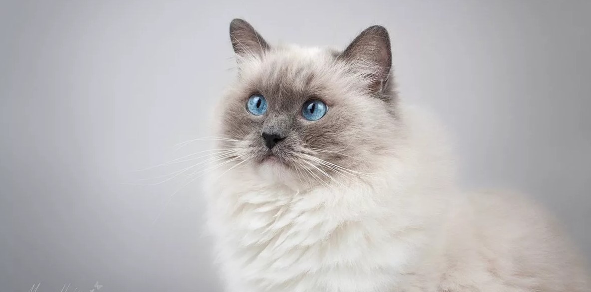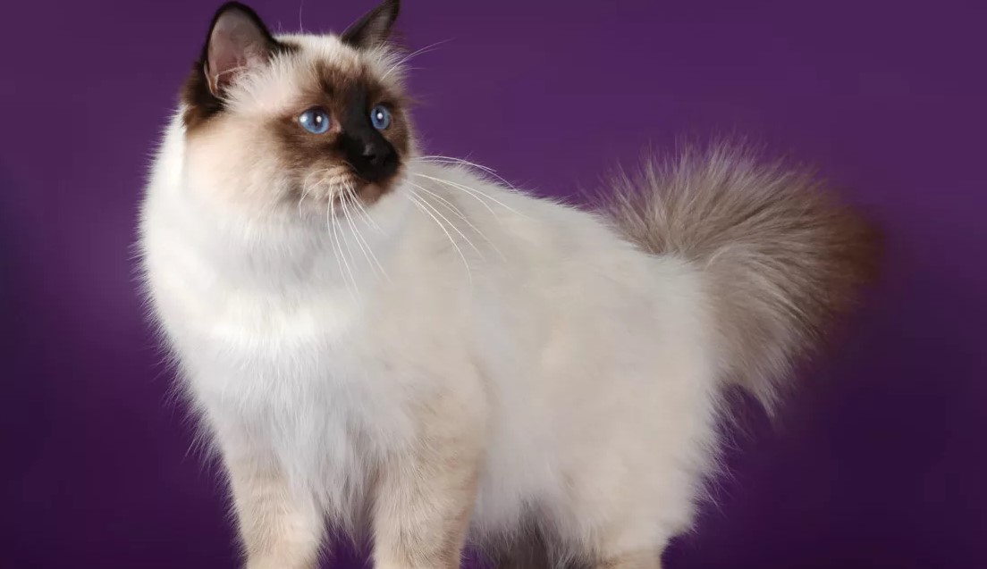 - Ragdoll The appearance of the representatives is similar to the Burmese cats, but differs in a more dense physique. Semi-long wool with a characteristic color-point color. The eyes are wide and expressive, the iris is intense blue, there may be different shades.