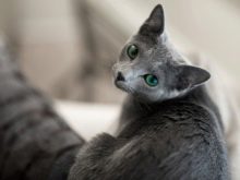 - Russian blue. A very old breed, has its history since the time of Peter the Great. Beautiful, sociable, cute cat.