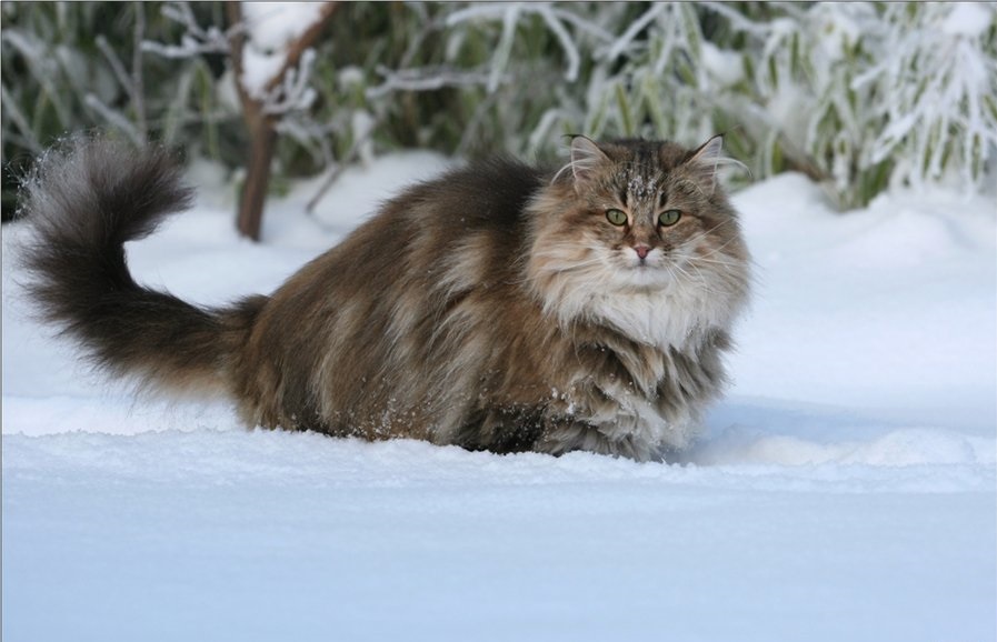 - Norwegian Forest. Big cats, with incredibly cute snouts. They love loneliness, independent in character.